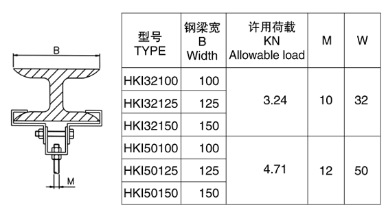 生根件--HKI型工字钢吊具 (HKI-TYPE BEAM CLAMP)