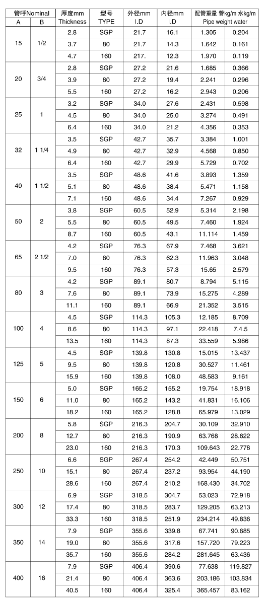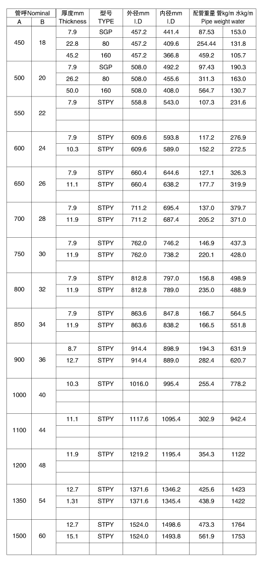 配管重量表 (PIPE WEIGHT TABLE): |