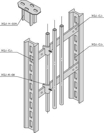 有工字钢柱及横梁等组成,它是电缆从配电室出线后垂直引上或引下同桥架连接的装置,与立柱接头配合使用。 Composed of H-girder column ,beams,ect,vertical up-leading frame is used with column Couplings toconnect the cable leading up or down vertically after leaving switch house to cable trays.
