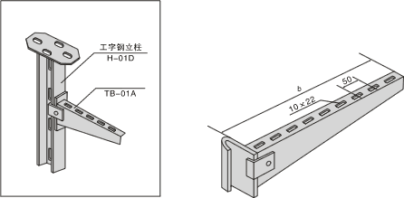 Corble Model TB-01A is used with H-girder column Model H-01A.it can be fixed on both sides of H-gider column at any leves. |