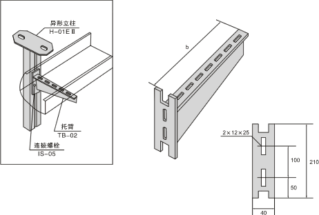Corble Model TB-02 is maily used with special-shaped steel column Model-H01E supplied with connection bolts IS-05.(prices of bolts to be refered) |